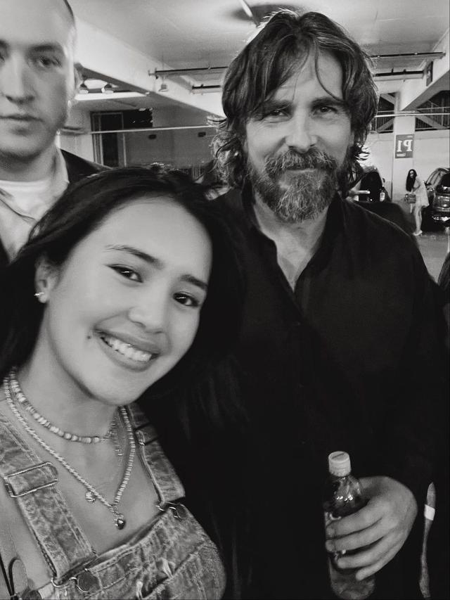 Pada kesempatan berbeda, Beby pernah bertemu Christian Bale. Melakukan selfie bareng pemeran Batman The Dark Knight, pemain sinetron Mermaid In Love mengunggah dengan filter monokrom.