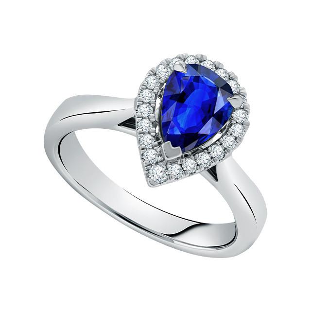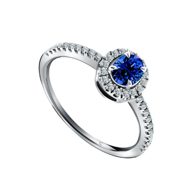 Ini adalah koleksi cincin dengan rancangan yang menunjukkan keanggunan dan kemewahan. Cincin cantik ini terbuat dari 3,5 gram emas dengan safir biru yang berada di tengah cincin, mulai dari 0,5 carat dan dikelilingi oleh 78 berlian dengan ukuran 0,18 carat.