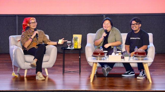 Pada kesempatan itu, Sandiaga juga berbincang langsung dengan Juang Manyala, CEO Pmancar.com. Ia telah membuat sebuah platform yang menjadi wadah transaksi ekonomi musisi.