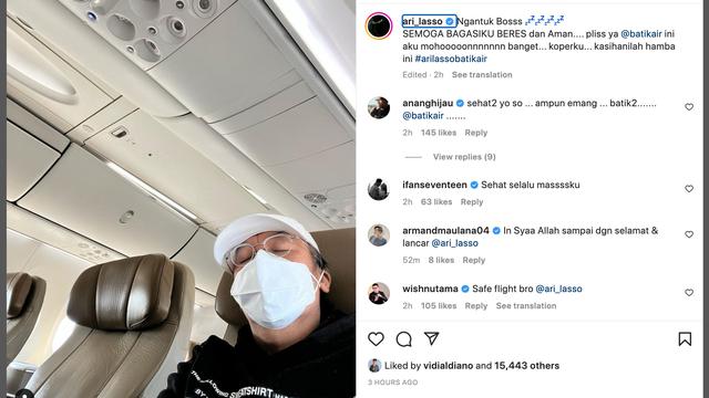 Beberapa jam kemudian, Ari Lasso membagikan kabar telah tiba di Tanah Air dengan selamat. Ia mengaku disambut sejumlah kru dari maskapai penerbangan berseragam putih.