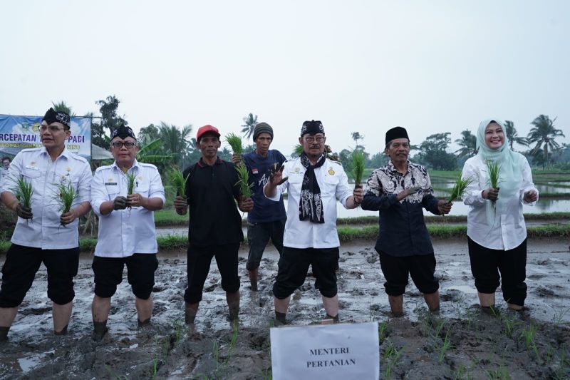 Mentan mengapresiasi petani Pandeglang yang hingga saat ini masih melakukan gerakan percepatan tanam.
