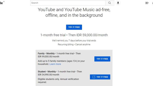 Sebelumnya, paket Family YouTube Premium dihargai Rp 89 ribu per bulan. Namun dengan adanya kenaikan tersebut, harga paket ini naik menjadi Rp 99 ribu untuk setiap bulan.