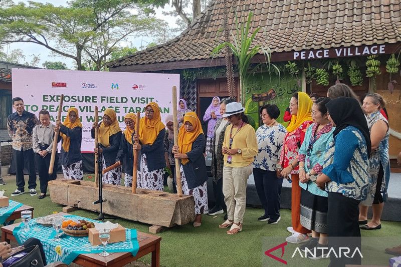 RedaksiHarian – Suara “tok, tek, tok, tek” dari kayu gelondong yang dipahat hingga berceruk atau berongga layaknya bentuk perahu (lesung) bertemu dengan batang kayu pemukul (alu) yang menimbulkan irama menyambut kedatangan Delegasi ASEAN Women Peace and Security (WPS) di Kalurahan Pandowoharjo, Sleman, DI Yogyakarta.