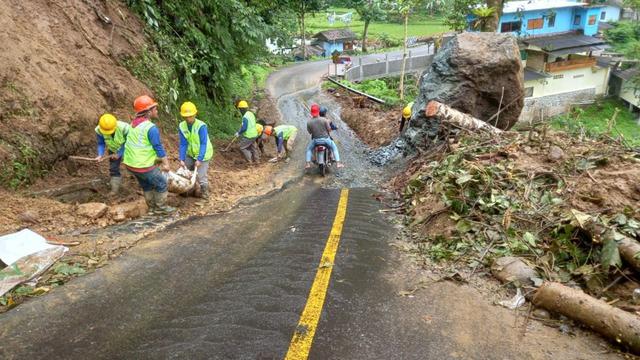 Kepala Satuan Kerja (Satker) PJN Wilayah II Jawa Barat Alik Mustakim mengatakan penanganan material longsoran dilakukan dengan memecah batu yang menutup badan jalan menggunakan alat breaker dan pembersihan lumpur.