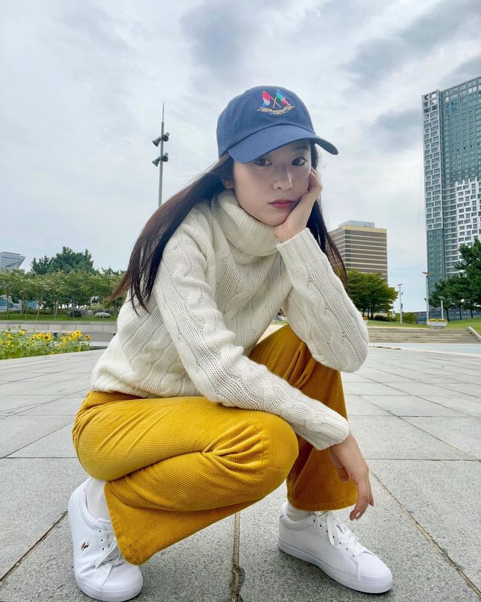 Kawan Puan ingin tampil cool dengan sweater? Maka kamu bisa menyontek gaya Seol In Ah berikut ini.