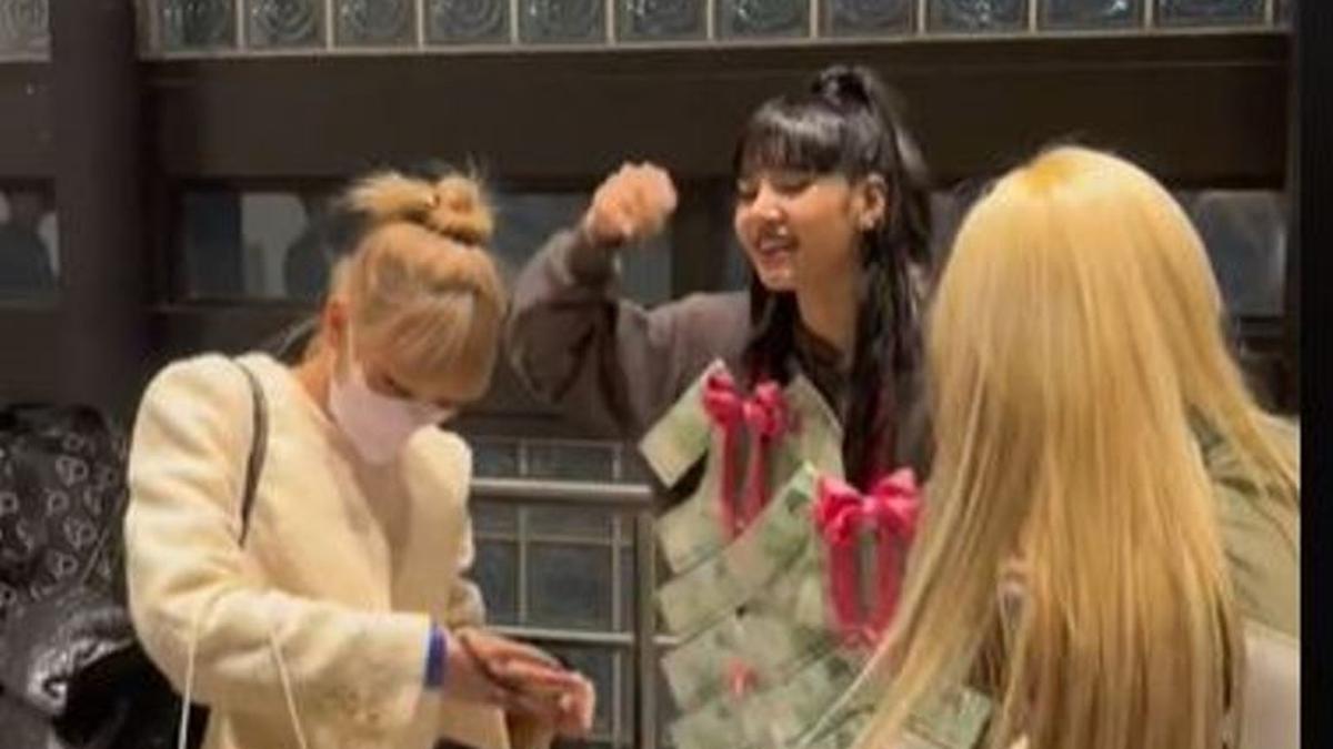 Tak hanya saling bersapa, Sorn serta Minnie juga membawakan sebuah kejutan untuk Lisa. Kejutannya adalah semacam kalung atau selempang uang dan bucket bunga. Kalung itu memuat sejumlah uang kertas 10.000 won (sekitar Rp100 ribu) yang diikat dengan pita merah muda. Lisa yang melihatnya pun dibuat terkejut dan salah tingkah dengan ide para sahabatnya itu.
