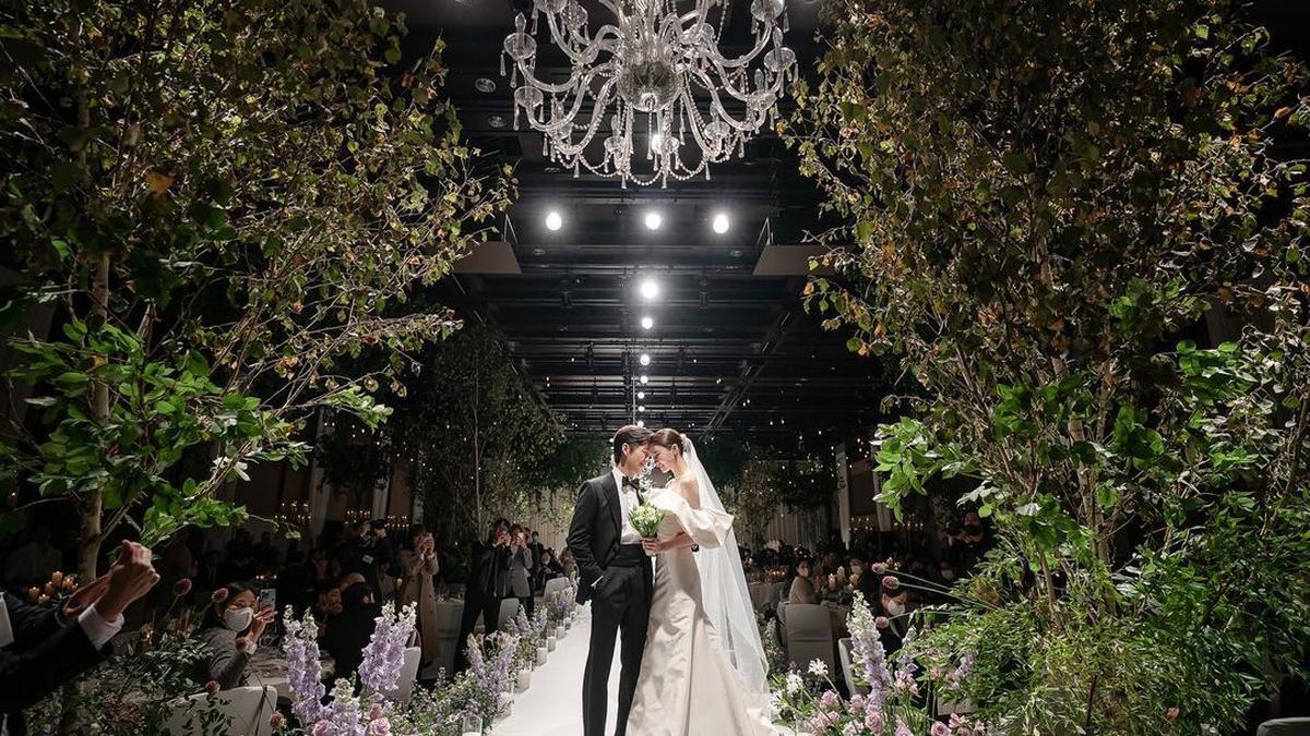 Dalam foto yang di-upload di akun Instagram-nya, terlihat ia dan sang istri, Jin Ah Reum. Mereka berdiri di venue yang ditata bak taman, lengkap dengan pohon dan bebungaan.