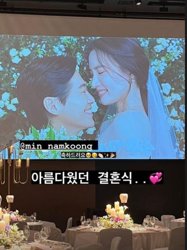 Pernikahan Namgoong Min ini tentu saja dihadiri sejumlah artis. Salah satunya adalah Seolhyun AOA, yang membagikan dua foto dari momen bahagia ini. Sebuah foto memperlihatkan potret prewedding Namgoong Min dan Jin Ah Reum yang ditampilkan di layar.