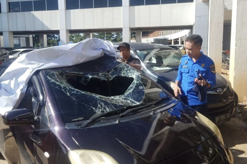 Beruntung korban hanya mengalami luka ringan karena terjatuh tepat di atas mobil warga yang sedang parkir di bawah jalan tersebut.