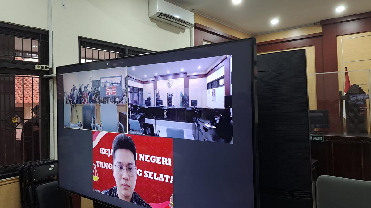 Baru bergulir beberapa menit, sidang ditunda karena Majelis Hakin belum menyiapkan putusan. Indra Kenz mengikuti jalannya sidang melalui jalur virtual dari Rutan Salemba.