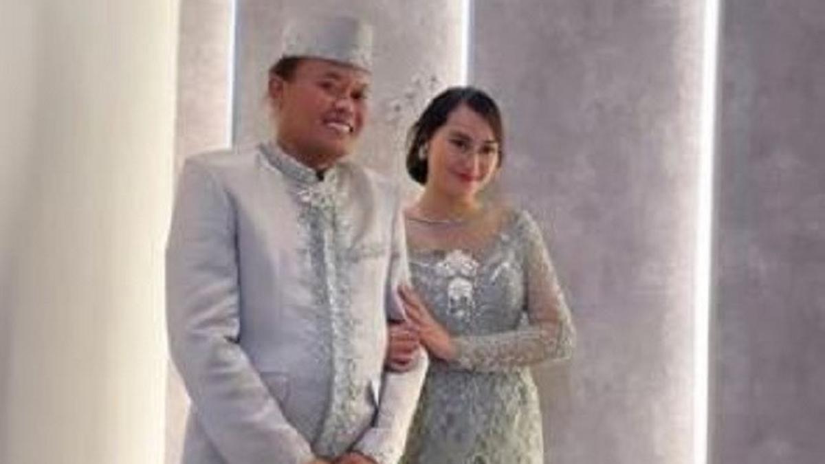 Dalam foto tersebut, tampak komedian berambut gondrong ini dan Memes Prameswari mengenakan pakaian pengantin berwarna silver.
