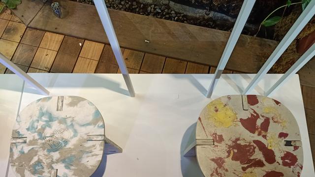 Kemudian, plastik dicetak menggunakan cetakan logam menjadi papan. Mereka menggunakan oven, dibakar dalam suhu tinggi. Butuh oven berukuran besar agar bisa menghasilkan papan itu. Belum lagi harus memikirkan kombinasi warna agar terlihat artistik.