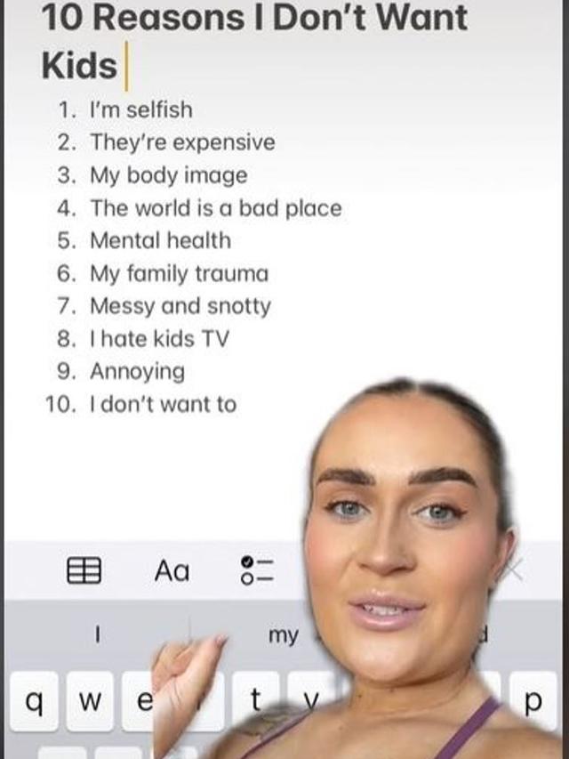 Daftar itu kemudian diberikan pada orangtuanya agar mereka mau merestui keputusannya tersebut. Wanita itu bernama Lorella Palmer. Video yang ia unggah itu merupakan penjelasannya soal alasan dia tak ingin menjadi seorang ibu.